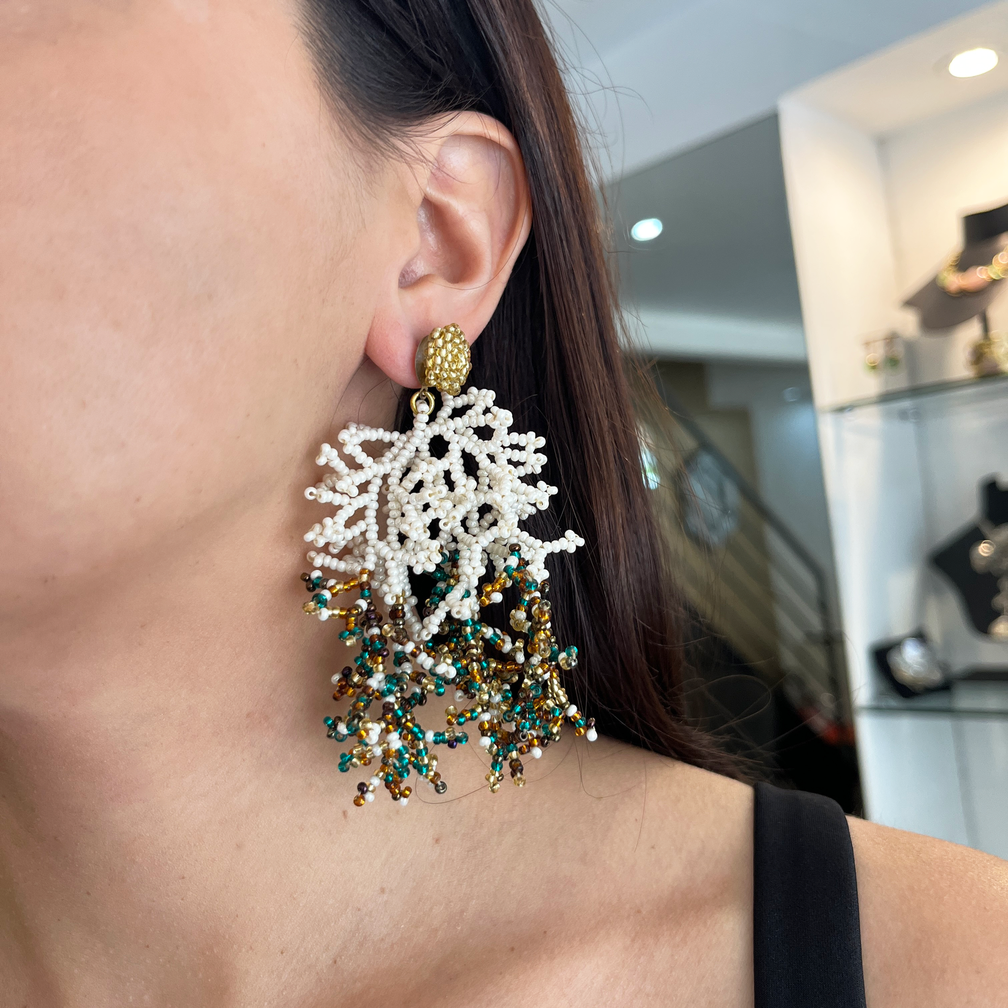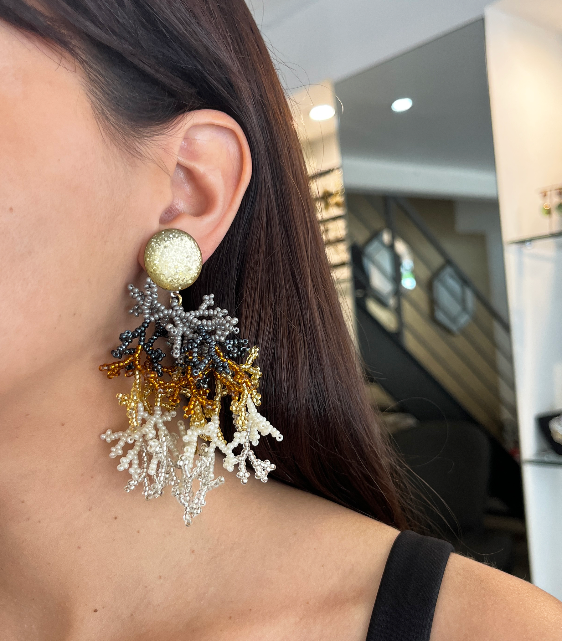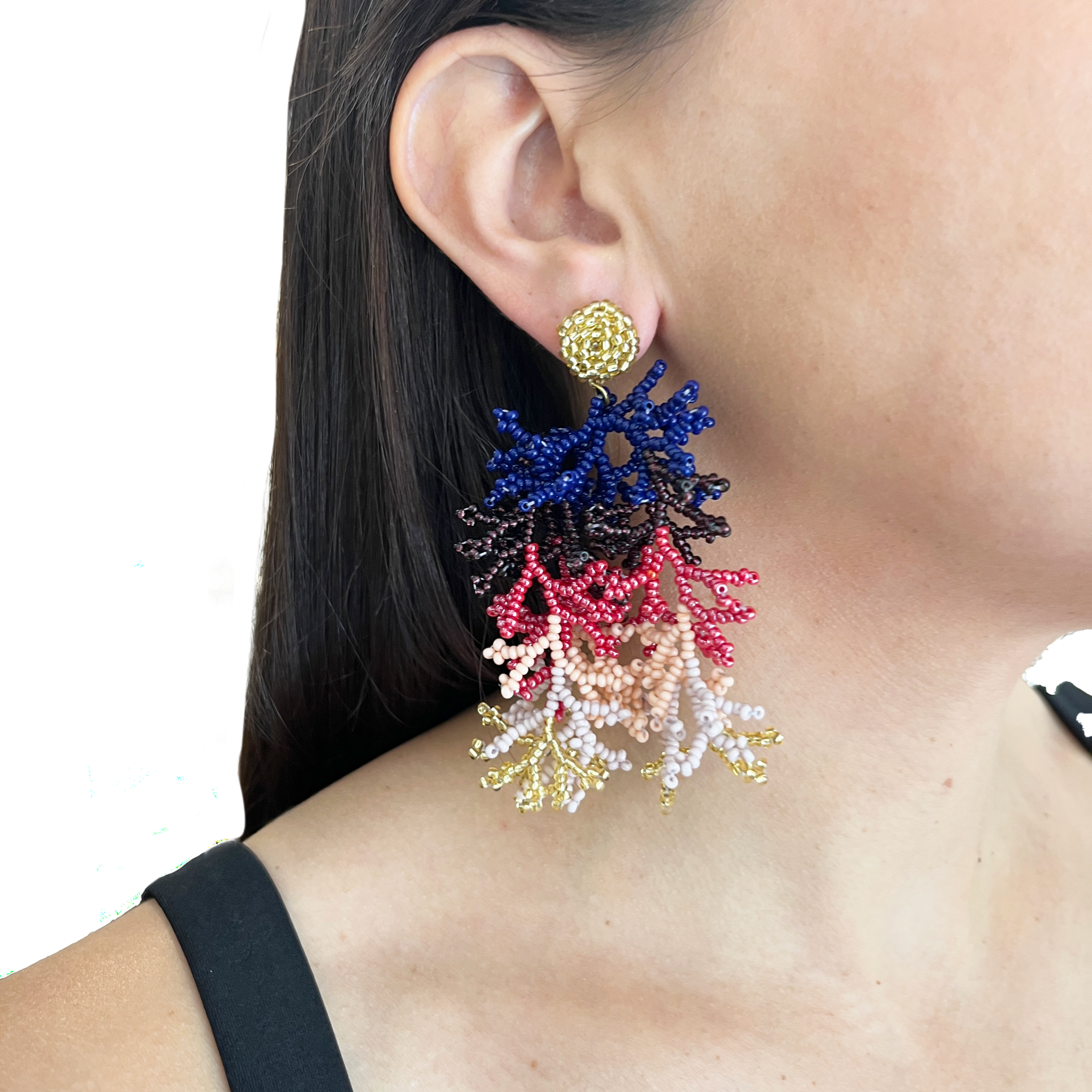 Caravanas hechas artesanalmente en mostacillas en forma de coral
