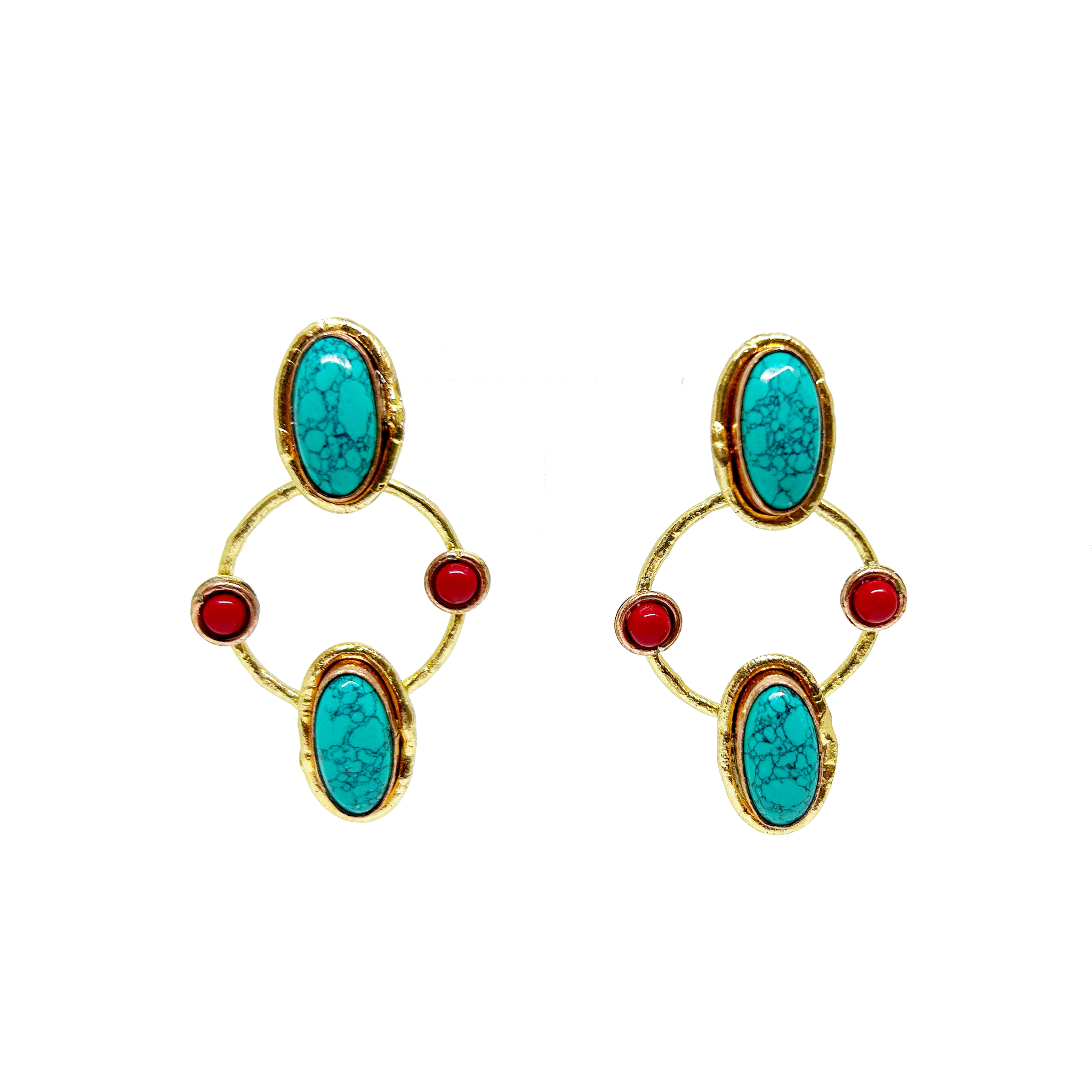 Caravanas largas hechos artesanalmente en bronce con piedras naturales engarzadas.