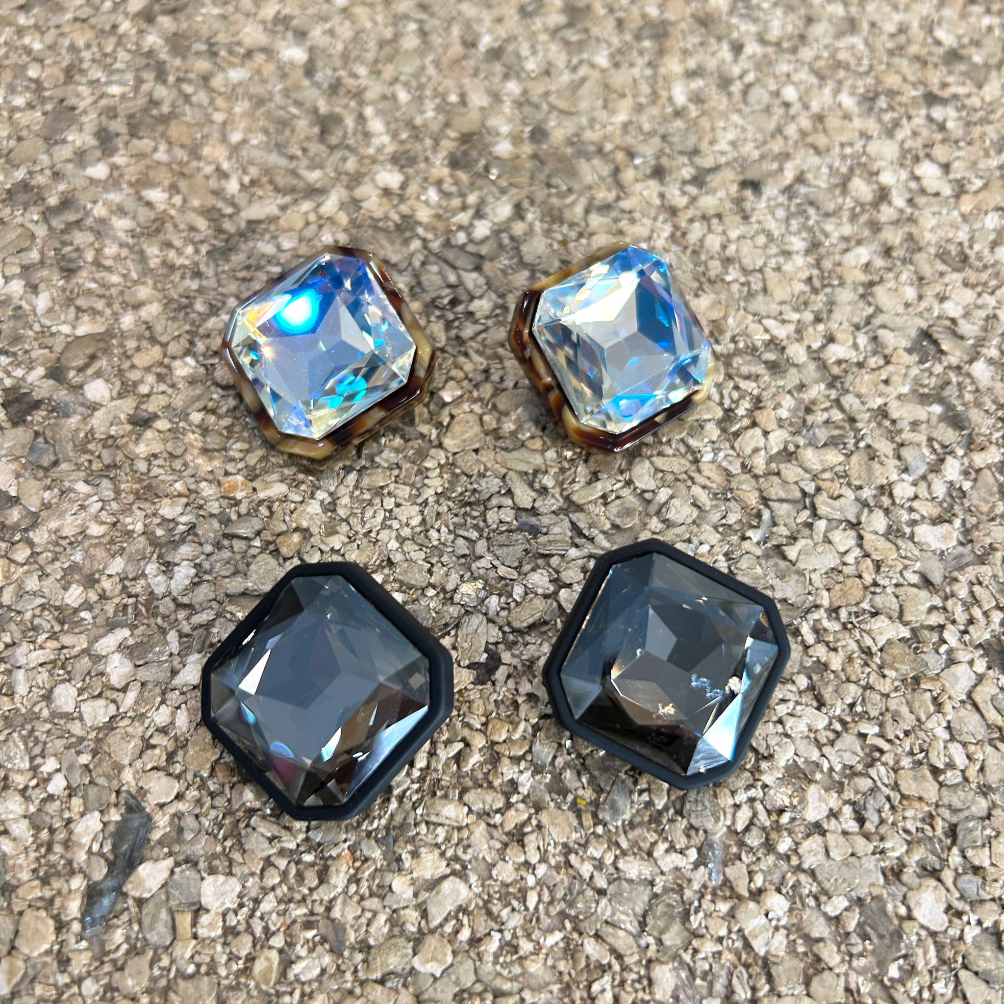 Caravanas de cristales con reborde de resina.