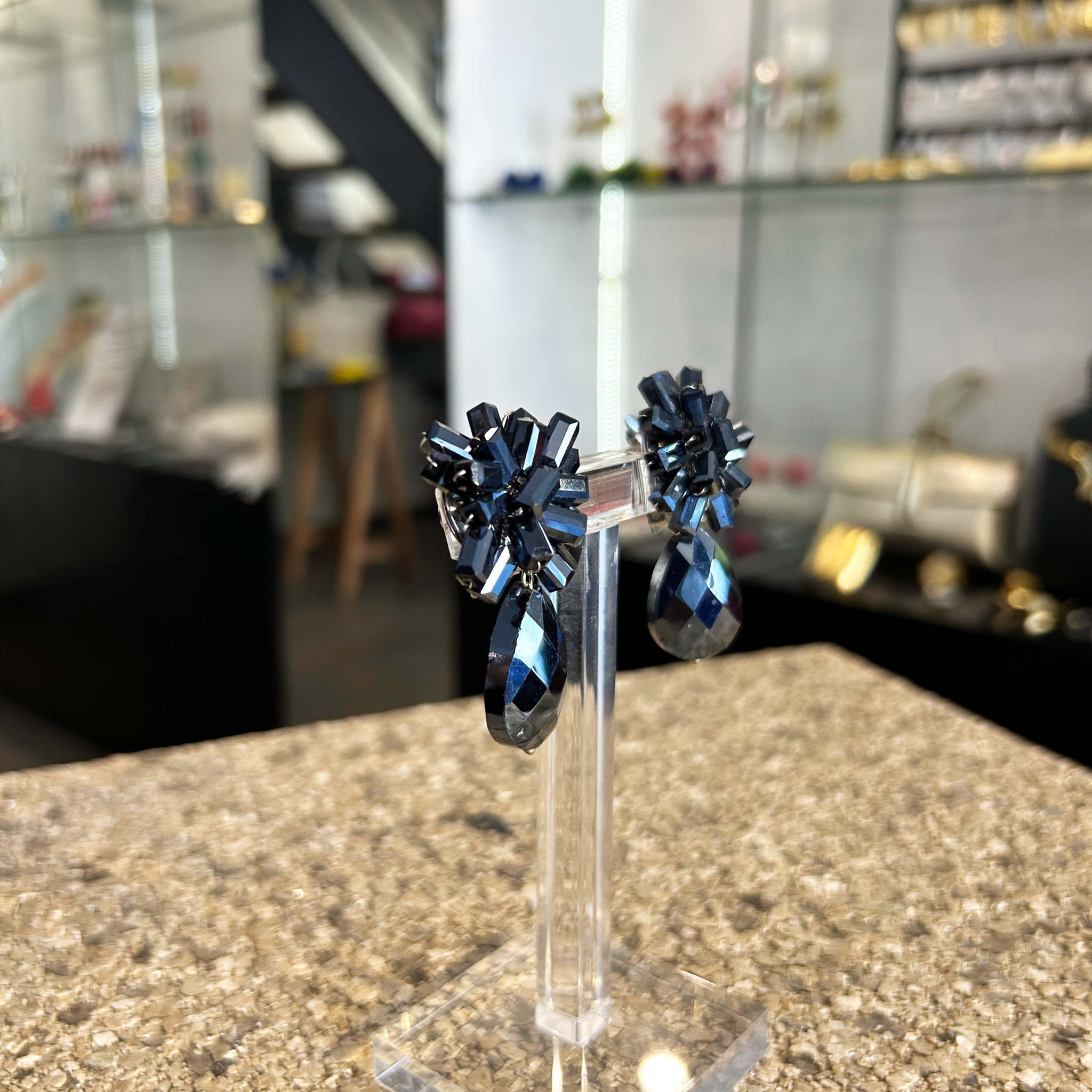 Caravanas hechas en cristales en forma de flor con gota colgante.