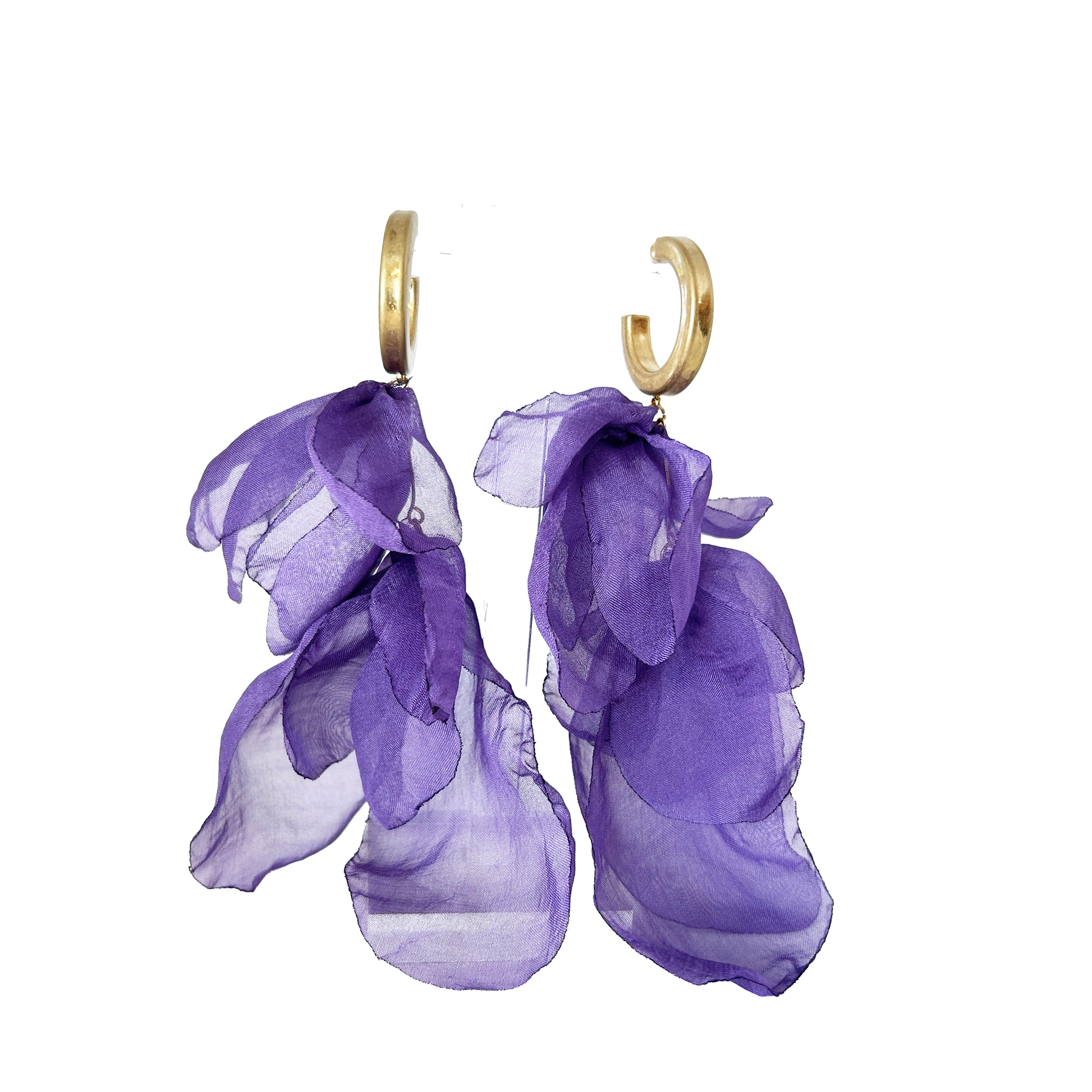Caravanas de argollas doradas opacas con hojas de tela colgante. Son super livianas y frescas para usar durante esta temporada de verano.