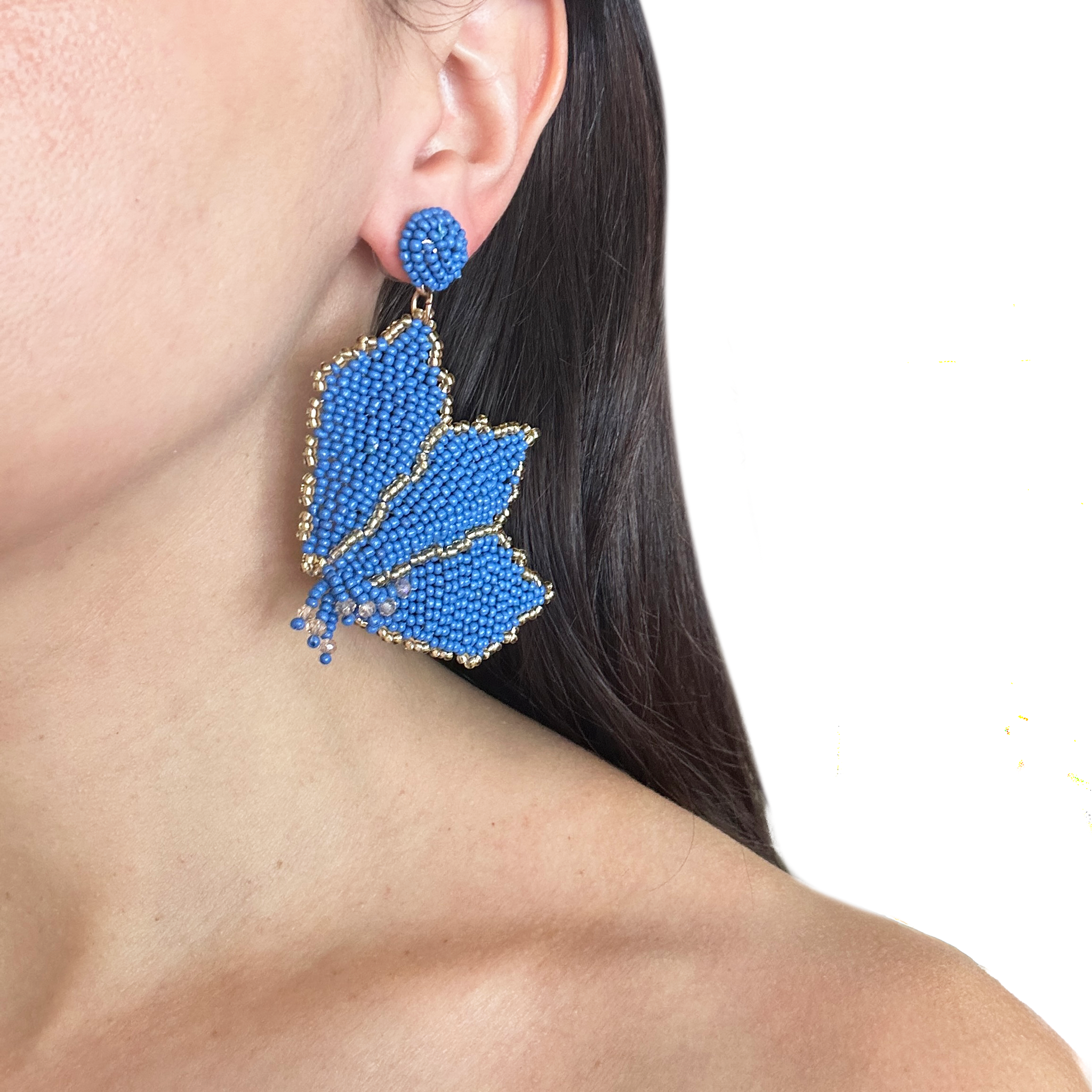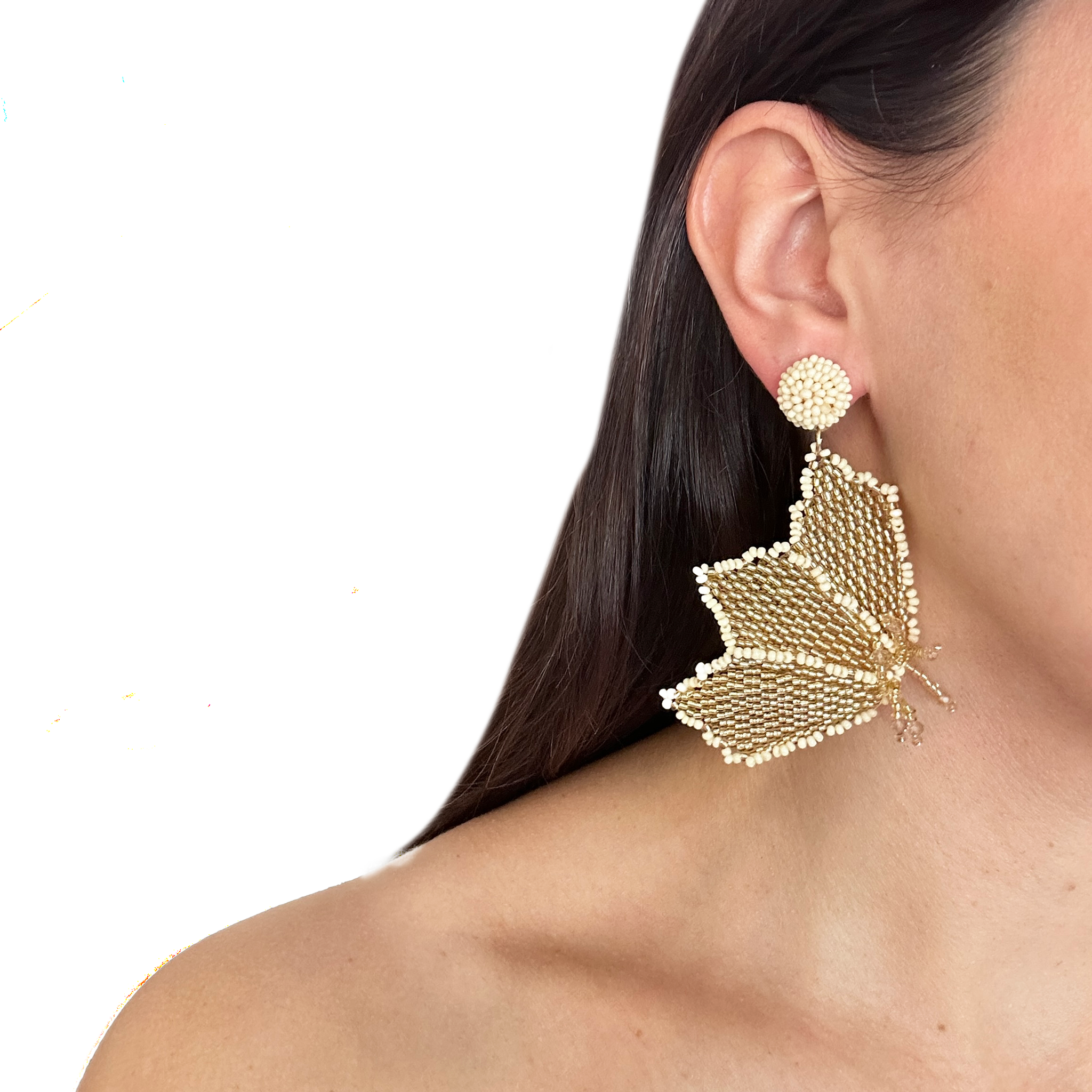 Caravanas hechas en mostacillas tramadas en forma de flores.