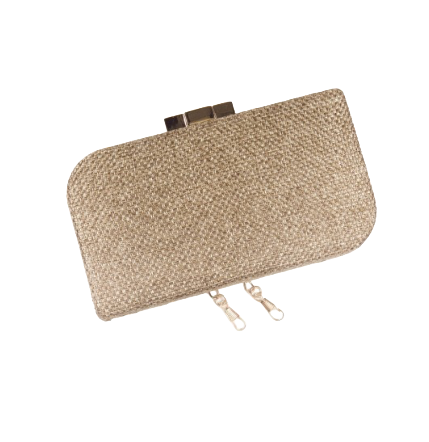 Clutch hecho en rafia sintética con cierre metálico dorado.