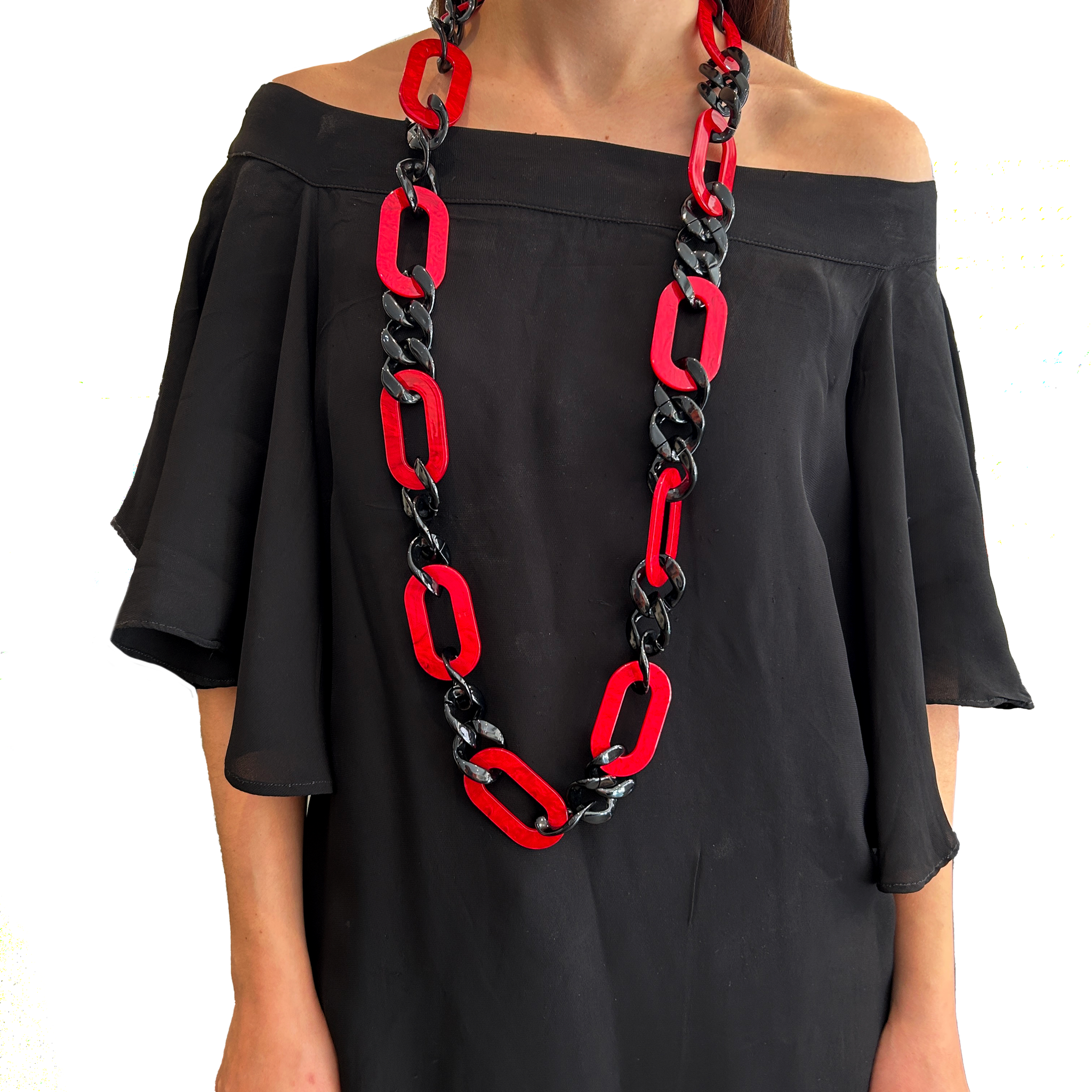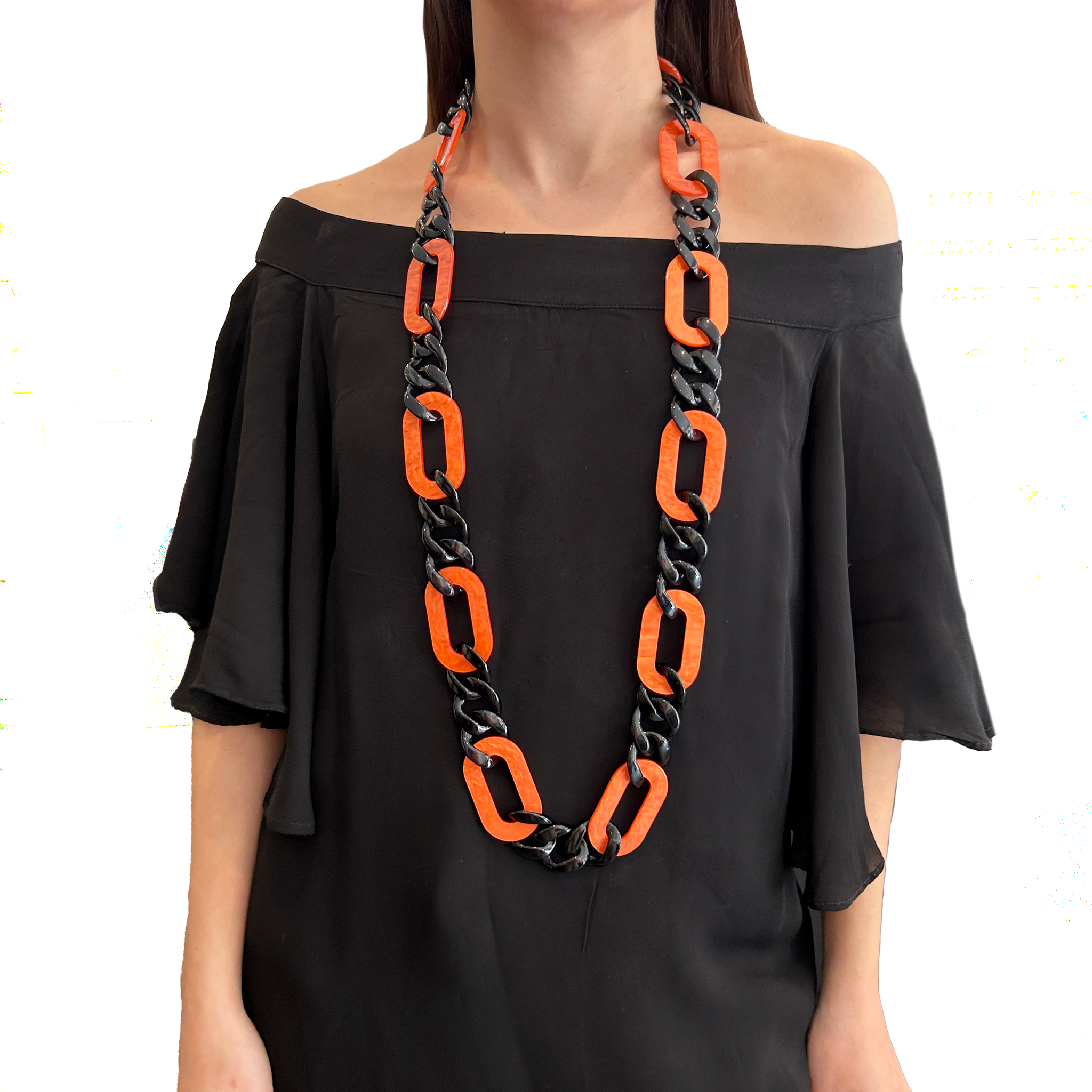 Collar largo  de resina combinado   con negro. Un accesorio moderno  que se puede usar todos los días, combinándolo con caravanas y pulseras!